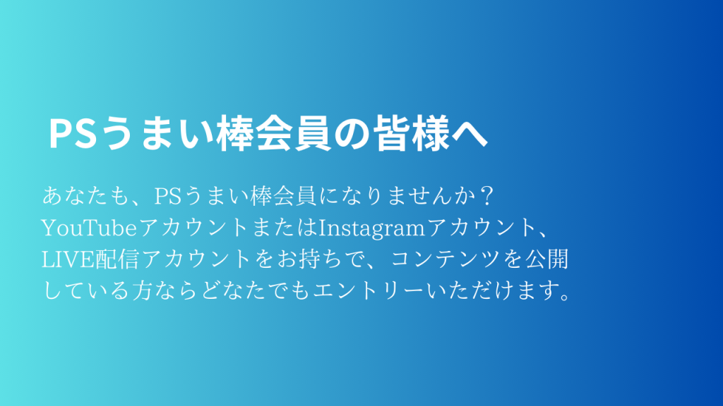 当サイトはPSうまい棒の最新の動画情報やライブ配信、イベント情報などを掲載しているPSうまい棒公式サイトです。